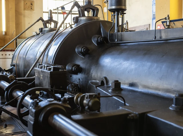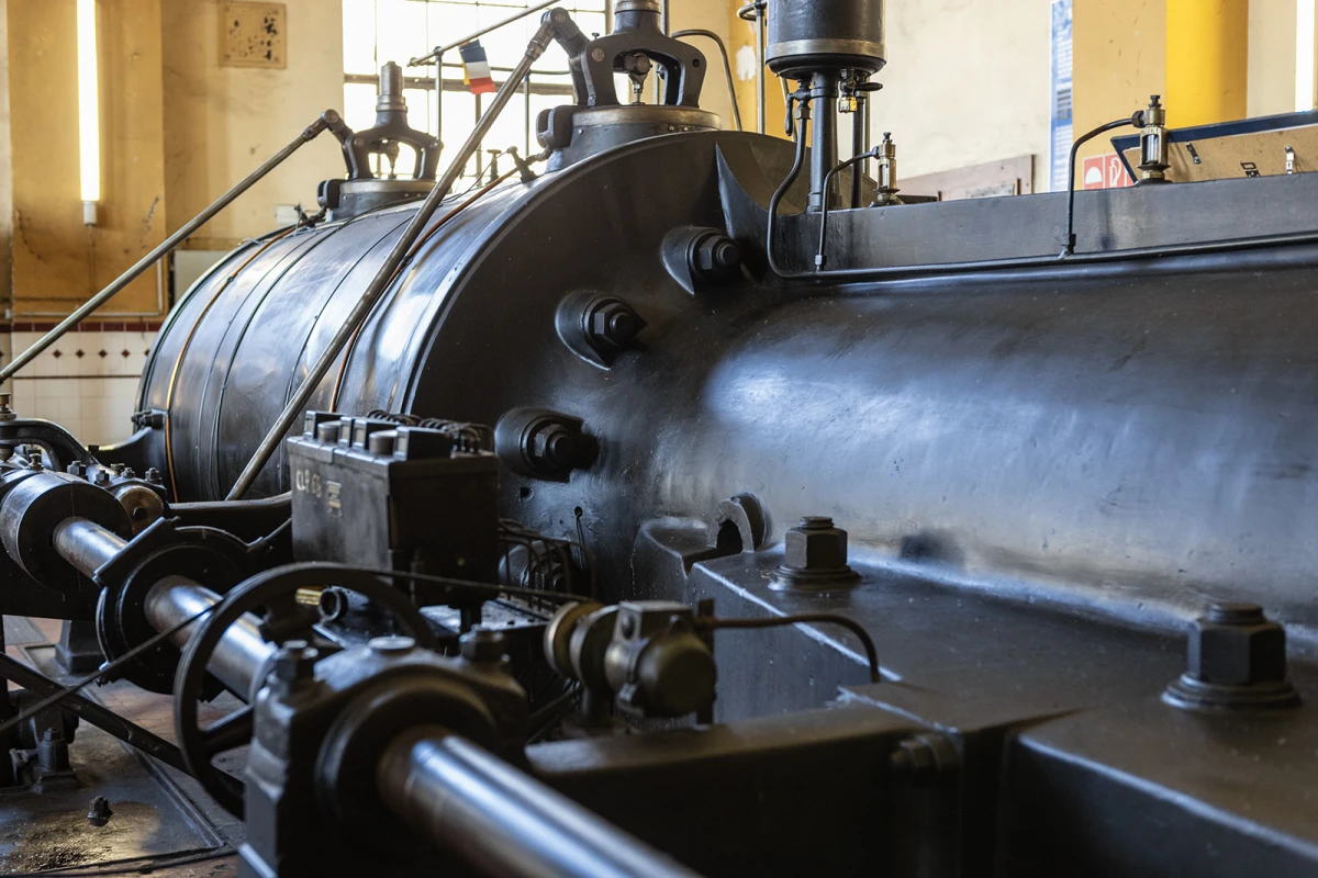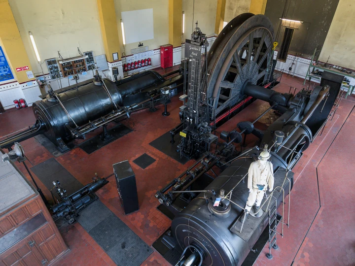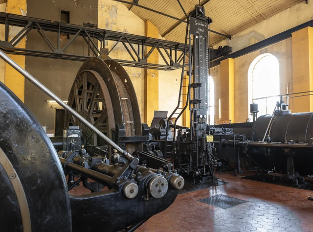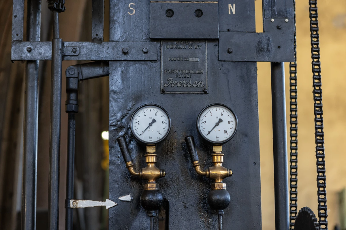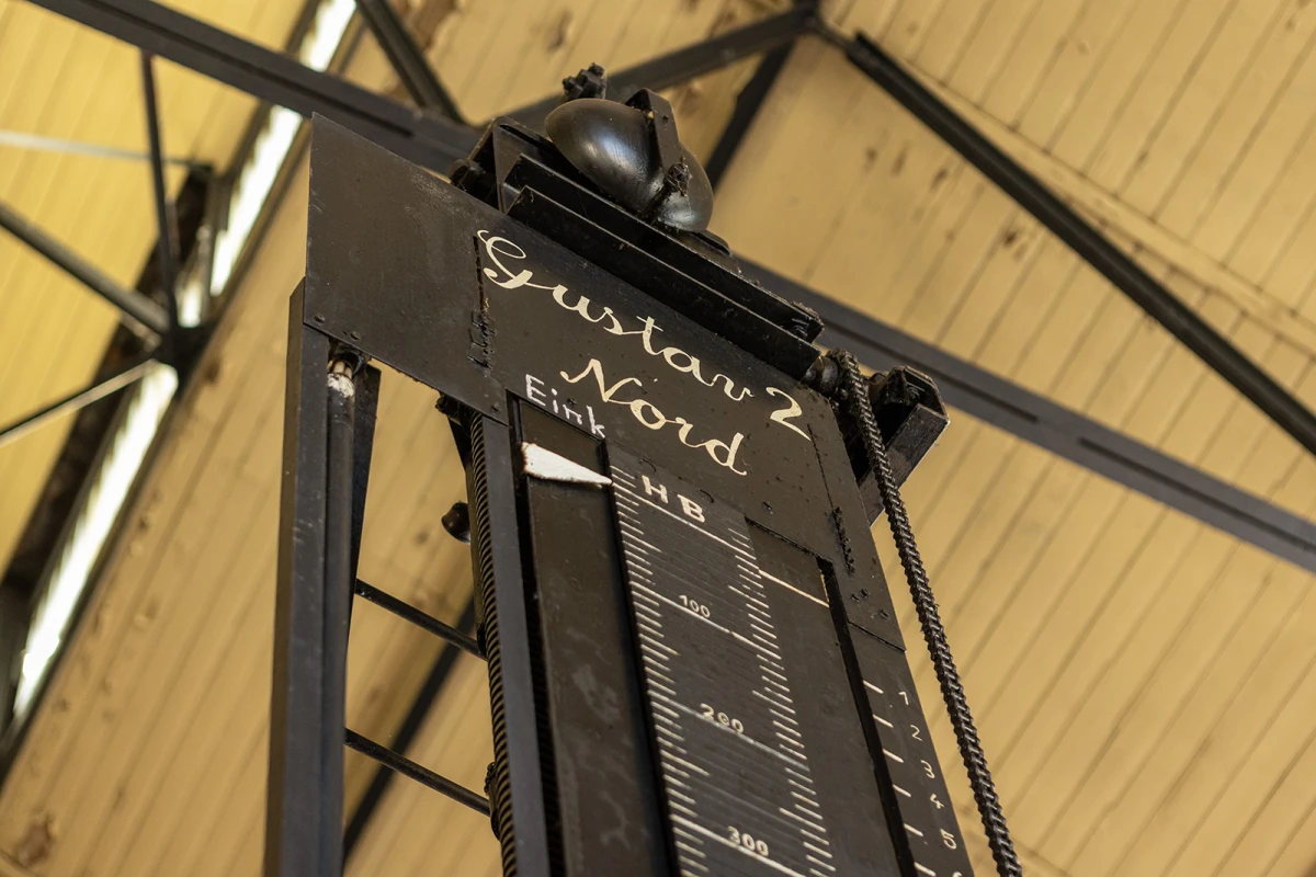 Der Gustavschacht II war ein Doppeltrum-Schacht, ausgestattet mit zwei unabhängigen Förderanlagen. Deshalb besitzt auch das Maschinenhaus eine Doppelbauweise. Während die Südmaschine leider verschrottet wurde, ist die Nordmaschine in außergewöhnlich gutem Zustand erhalten.
